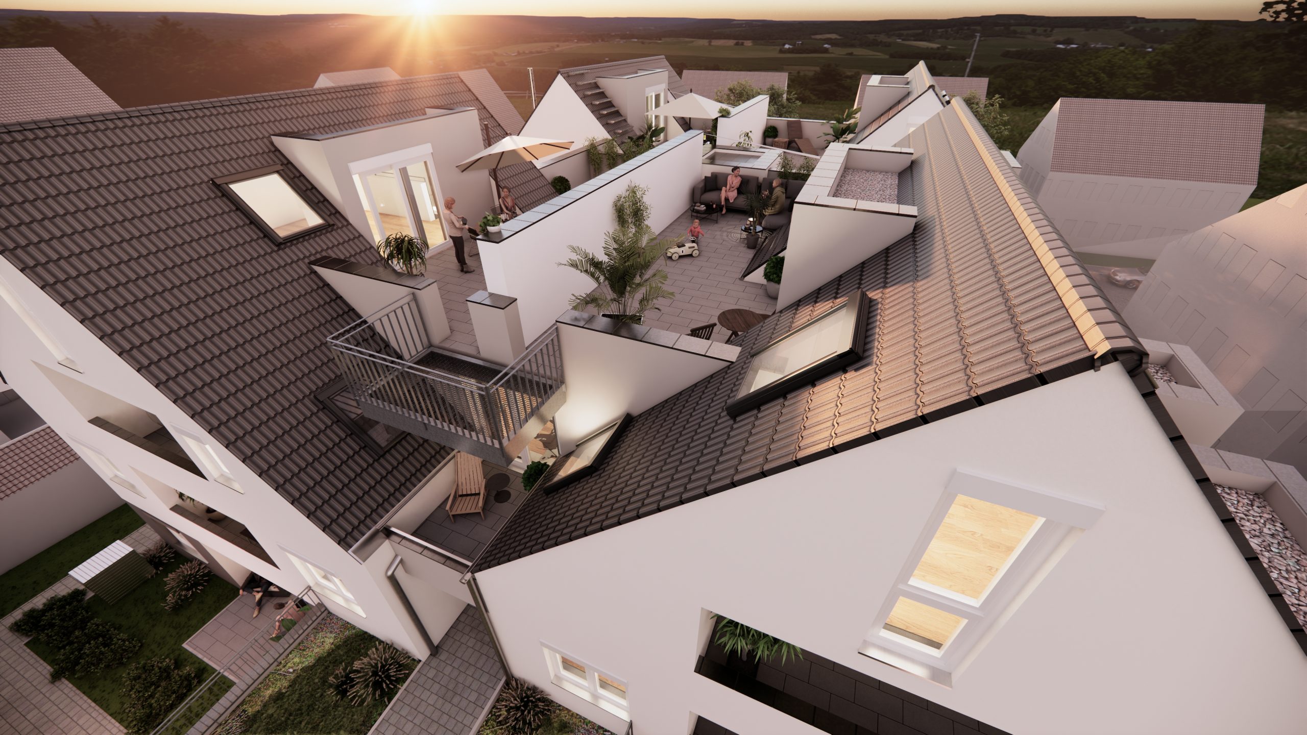 Die Nähe zur Natur verspricht entspanntes Wohnen. Die Wohnungen im Erdgeschoss verfügen über Loggien oder großzügige Terrassen mit eigenem Gartenanteil. Im Obergeschoss sind die Wohnungen mit einer Loggia ausgestattet. Im Dach- und Galeriegeschoss bieten Loggien und Dachterrassen viel Platz um die Sonnenstunden zu genießen. Ein modernes Wohngefühl ist bei diesen Wohnungen garantiert. Für jede Lebensphase und für jeden Geschmack findet sich hier die passende Größe. Sie sind ideal geeignet für Singles, Paare oder Familien.